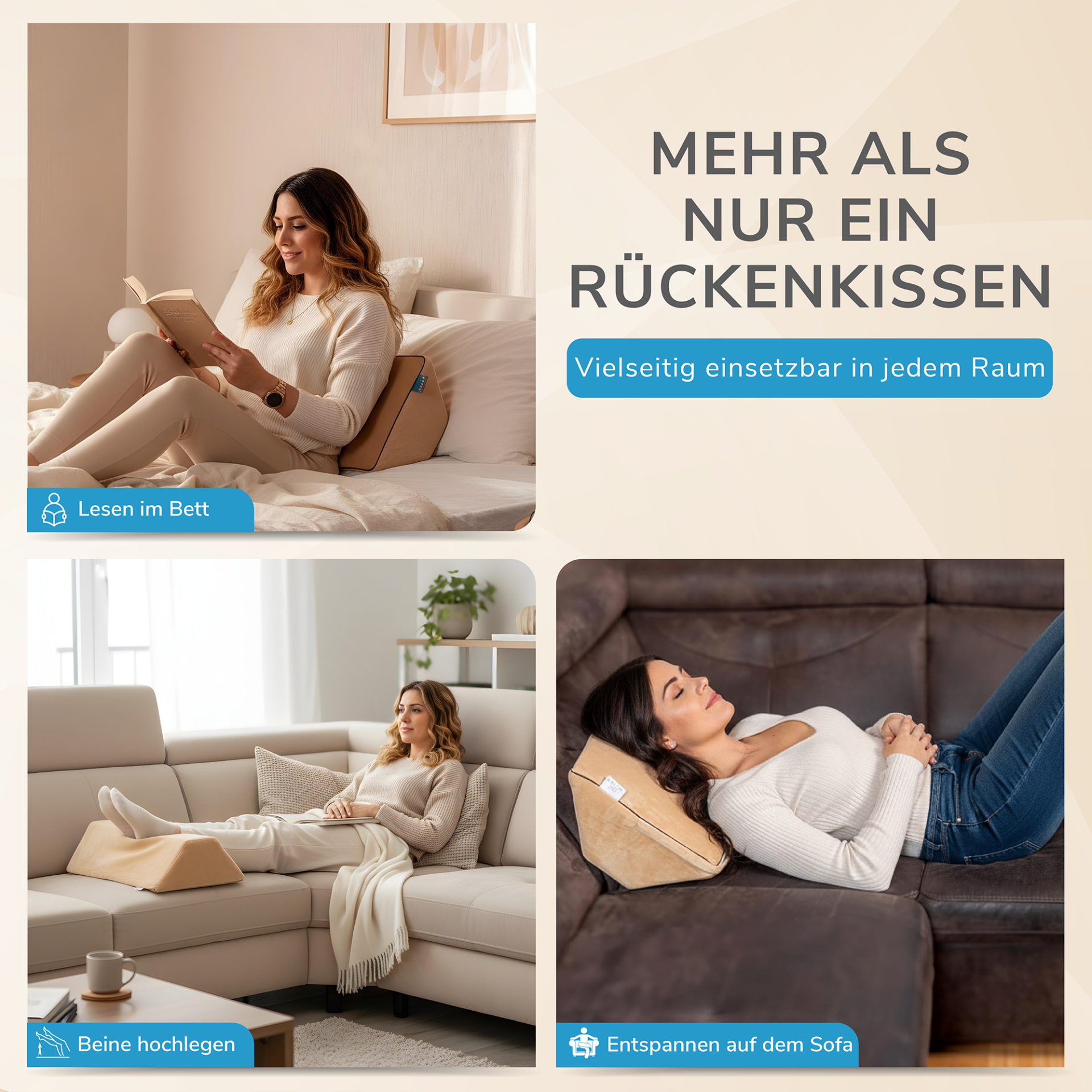 Dieses Kissen unterstützt Menschen von jung bis alt. Auf der Couch oder im Bett kommen die Stützkissen optimal zum Einsatz. Als Rückenstützkissen aufrecht sitzend, zum Ausgleichen steiler Rückenlehnen auf Ihrem Sofa oder zum Auflegen eines z. B. Buches oder Laptops. Entlasten Sie somit Ihre Arme beim Lesen oder Arbeiten. Es bietet neben Komfort auch die erwünschte Stabilität mit vielen Möglichkeiten.