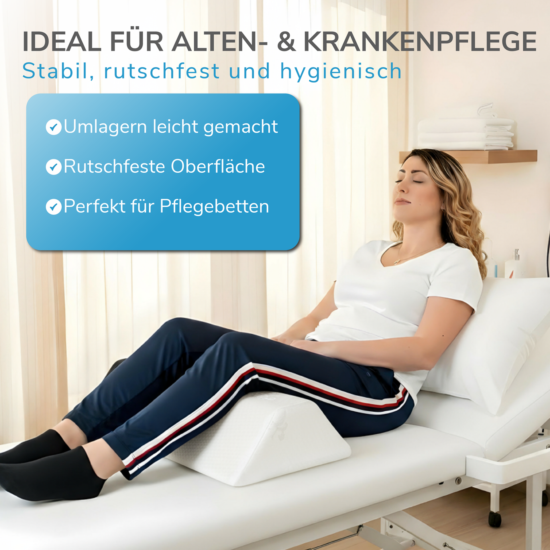 - Vielfältige Einsatzmöglichkeiten: Der Peze Savior dient als effektive Fußstütze, die müde Beine entlastet und für Entspannung sorgt. In der Alten- und Krankenpflege erweist es sich als unverzichtbares Lagerungspolster und Stützkissen, das dabei hilft verschiedene Positionierungen einfach und sicher durchzuführen.