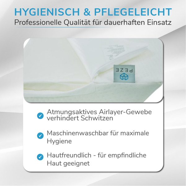 - Einfache Handhabung: Der Bezug des Peze Savior lässt sich mühelos abnehmen und reinigen, was die Hygiene und Pflege des Kissens erheblich vereinfacht. Dies ist besonders wichtig in Umgebungen, wo Sauberkeit und Hygiene oberste Priorität haben.
